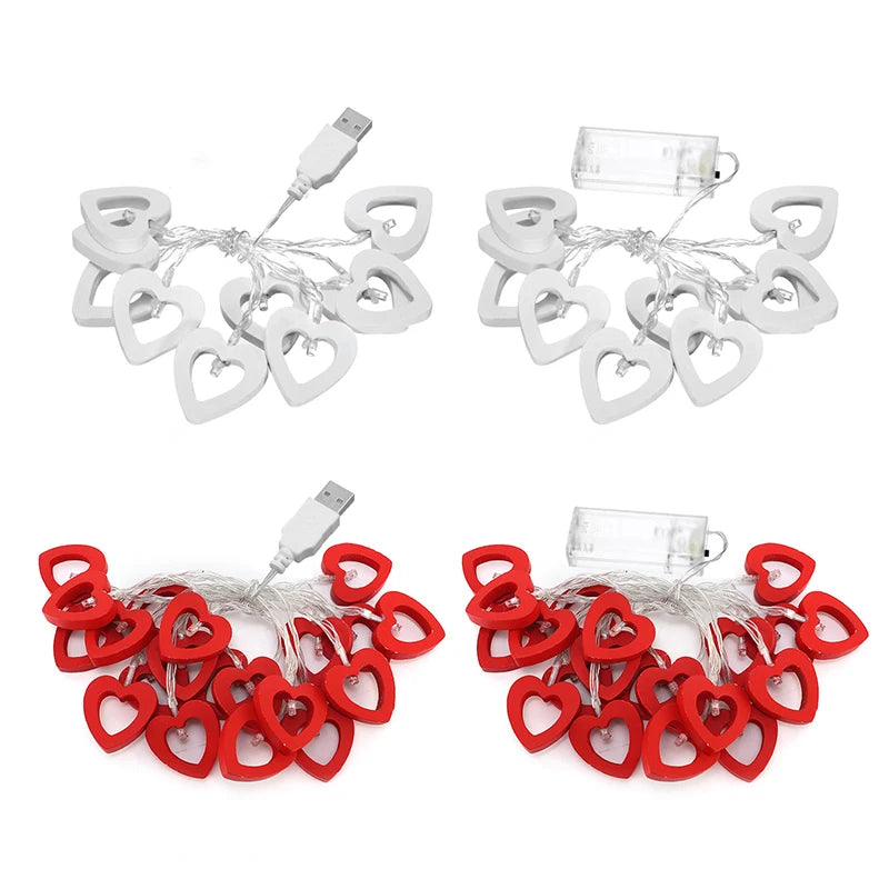 Illuminate your space with our LED Wooden Heart String Lights. These festive lights add a touch of warmth and charm to any occasion. With 20 lights in a string, you can easily create a cozy atmosphere. Perfect for weddings, parties, or simply elevating your home decor.