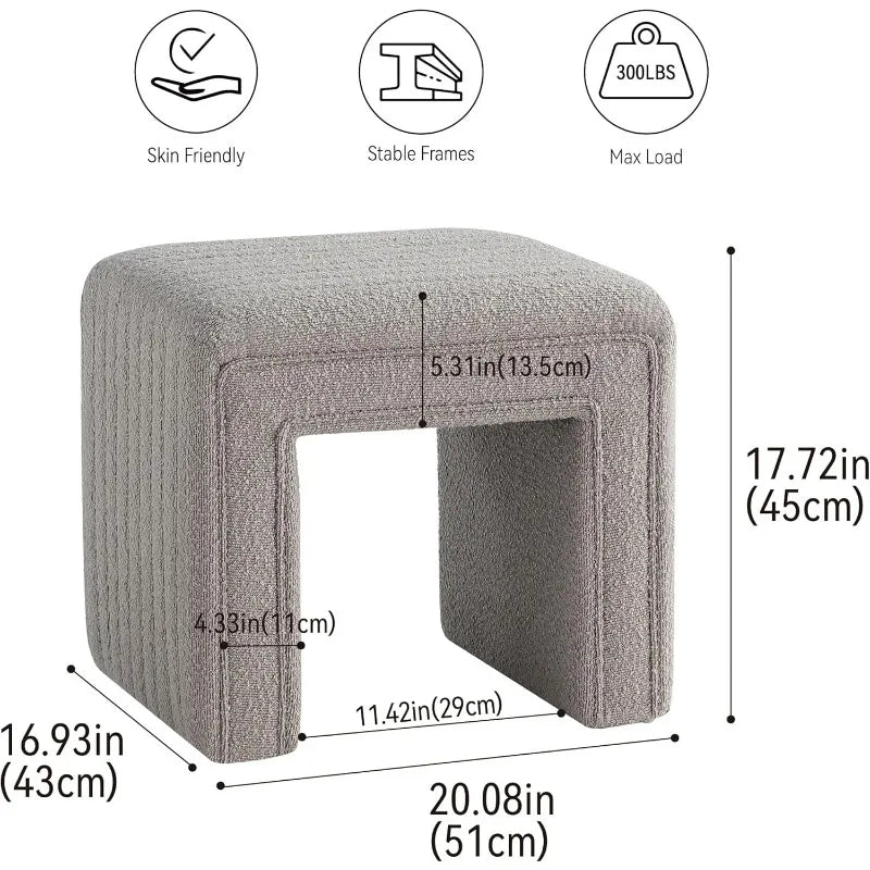 Elevate your home decor with our Boucle Ottoman featuring a unique contemporary design and sleek wooden legs. Experience the perfect blend of style and functionality with this statement piece. Give your space a modern touch with this eye-catching and versatile addition.